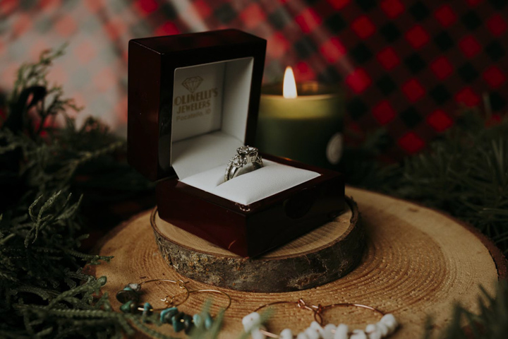 For the final assignment, I decided to shoot a holiday themed scene. I used my wedding ring, my favorite earrings from Mary Janes Gems (a local jeweler who creates gem pieces) and some wrapping paper, a wreath and some fresh pine. Christmas is my favorite time of year, my husband proposed to me on Christmas morning with this Molinelli’s box with a beautiful diamond set inside. The band is from Molinelli’s jewelers in Pocatello, and the wedding ring is from the 1950s, it belonged to my husbands great grandmother and was passed down to him to have.